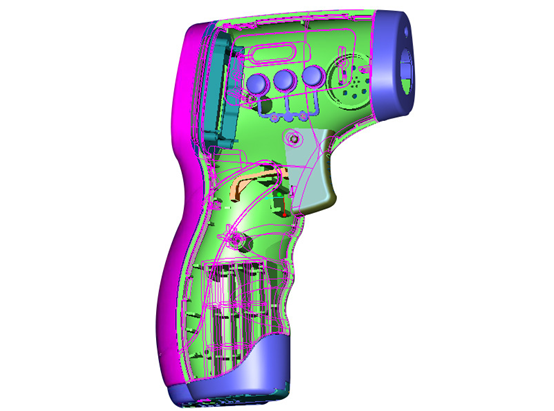 在体温枪外壳塑胶制品的诸多制造工艺中,最主要的就是注塑成型,而在注塑成型工艺中,最关键、最核心的部分就是体温枪塑胶模具的设计和开发。